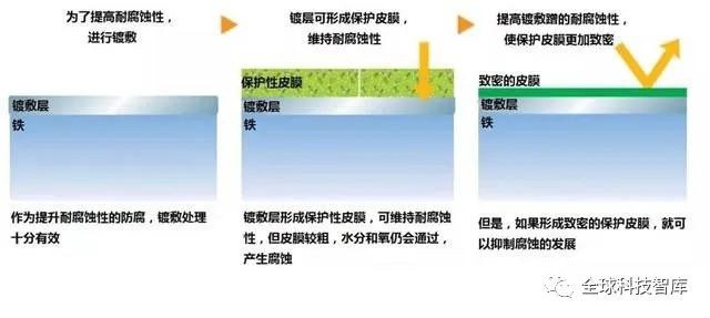 圖1-1 鍍鋁鎂鋅技術(shù)平面部防腐機制