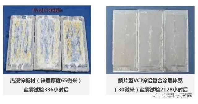 圖4-2 熱浸鍍鋅與VCI片鋅技術(shù)鹽霧試驗對比