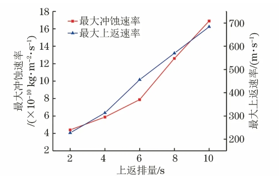 圖6 上返排量對最大沖蝕速率和最大上返速率的影響