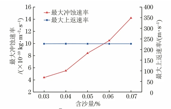 圖7 含砂量對最大沖蝕速率和最大上返速率的影響